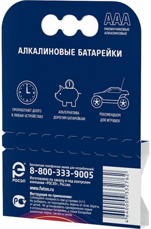 Батарейка (элемент питания) Фотон LR03/ААА мизинчиковая блистер 4 шт.