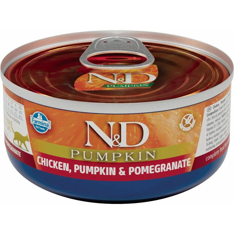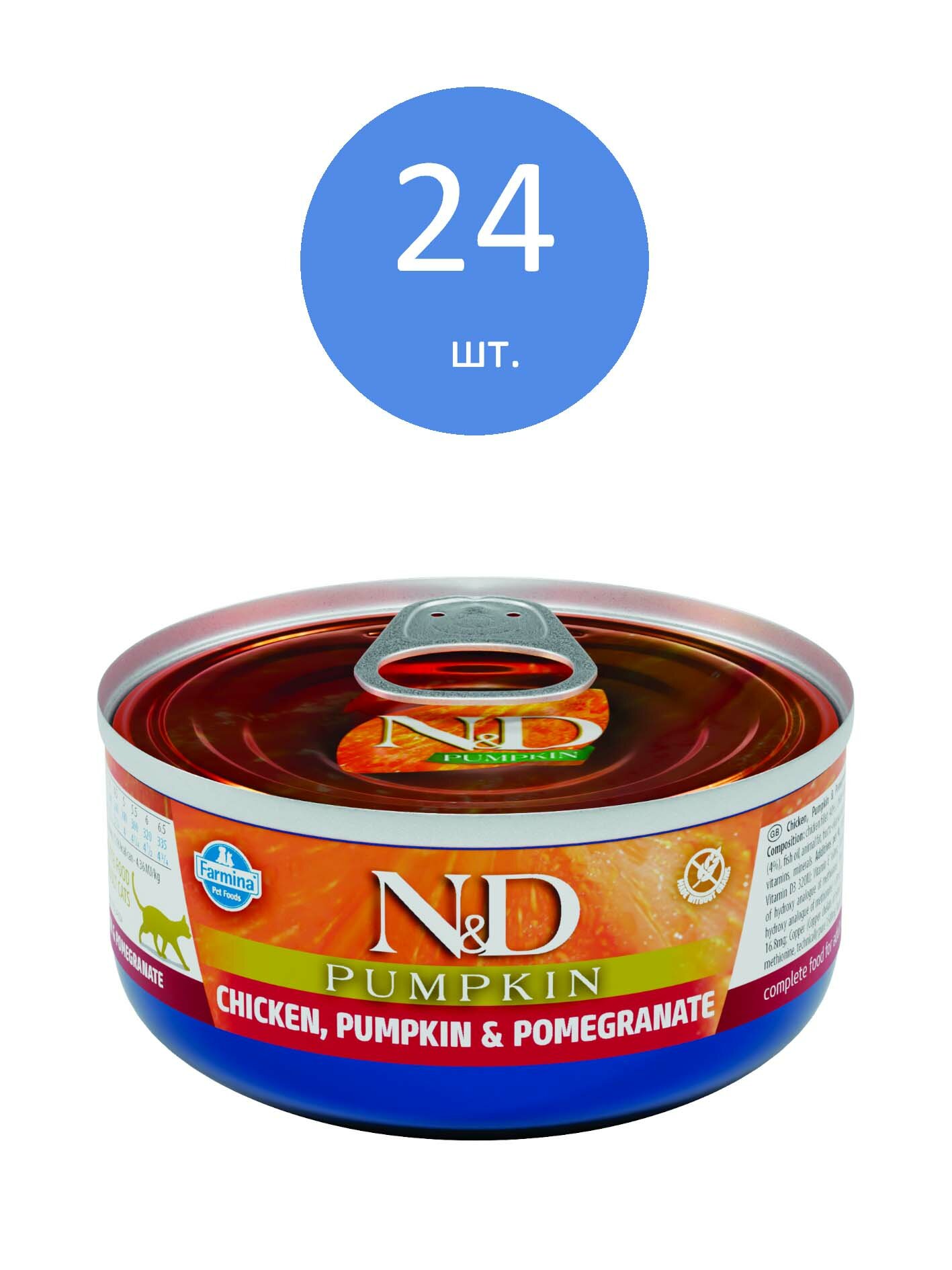 Корм для кошек Farmina N&D Cat Pumpkin консервы для взрослых кошек Курица, гранат и тыква, 70 г. упаковка 24 шт