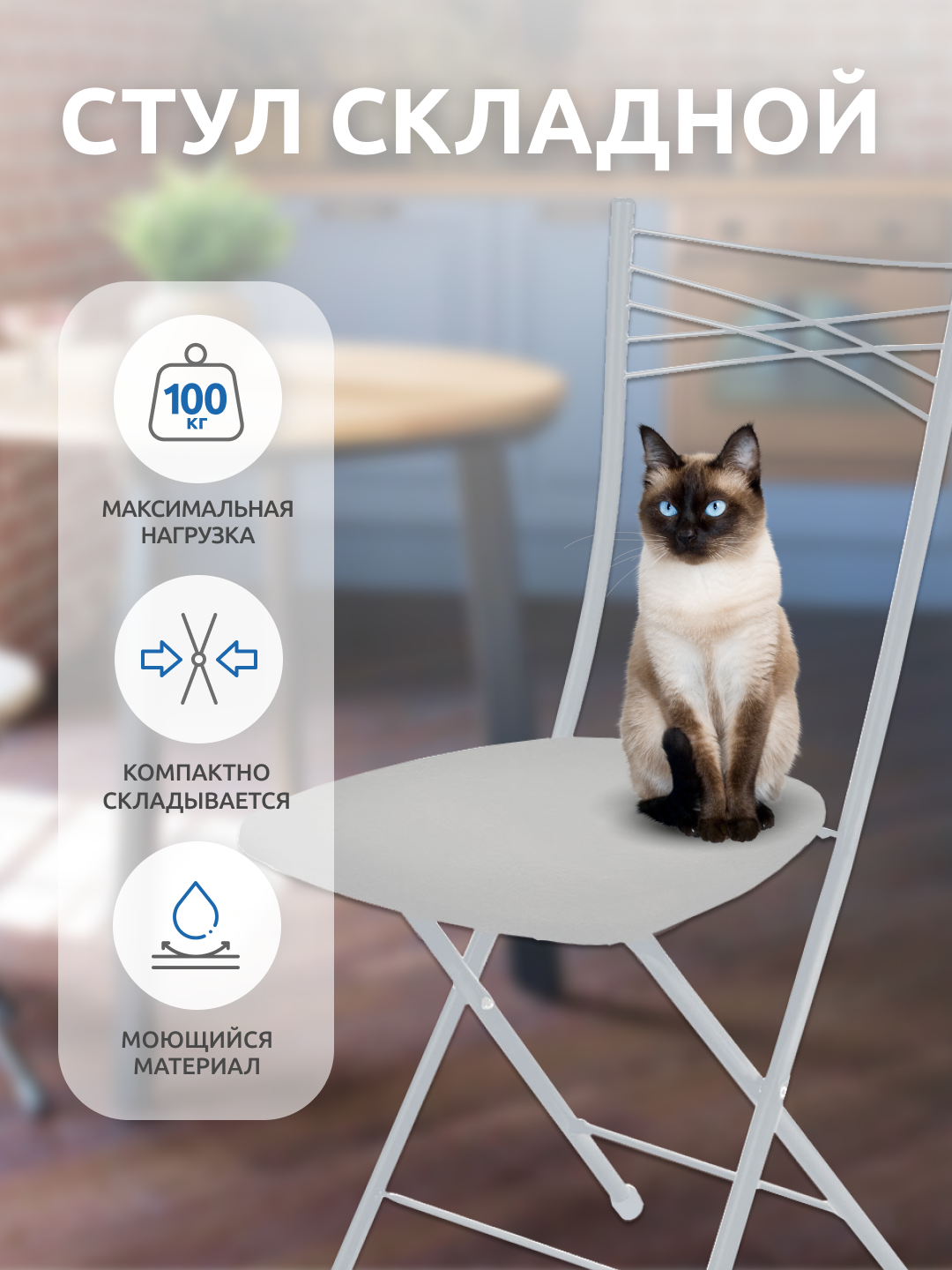 Складной стул со спинкой для кухни из экокожи НИКА, ССН1/10 молочный