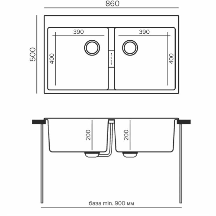 Кухонная мойка TOLERO Loft TL-862 дизайнерская, с двумя чашами и системой скрытого перелива из кварцевого песка (Германия) (№911 Черный)
