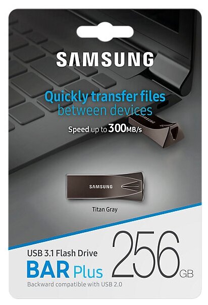 Лучшие цены. Флешка Samsung BAR Plus 256 GB, серый. Магазины в вашем городе.