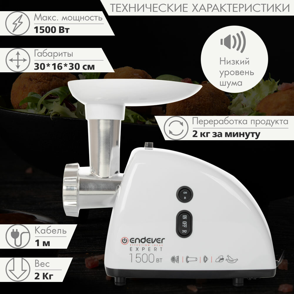 Мясорубка электрическая Endever Sigma-41 / 1500 Вт / до 2 кг/мин / насадки для колбас и кеббе