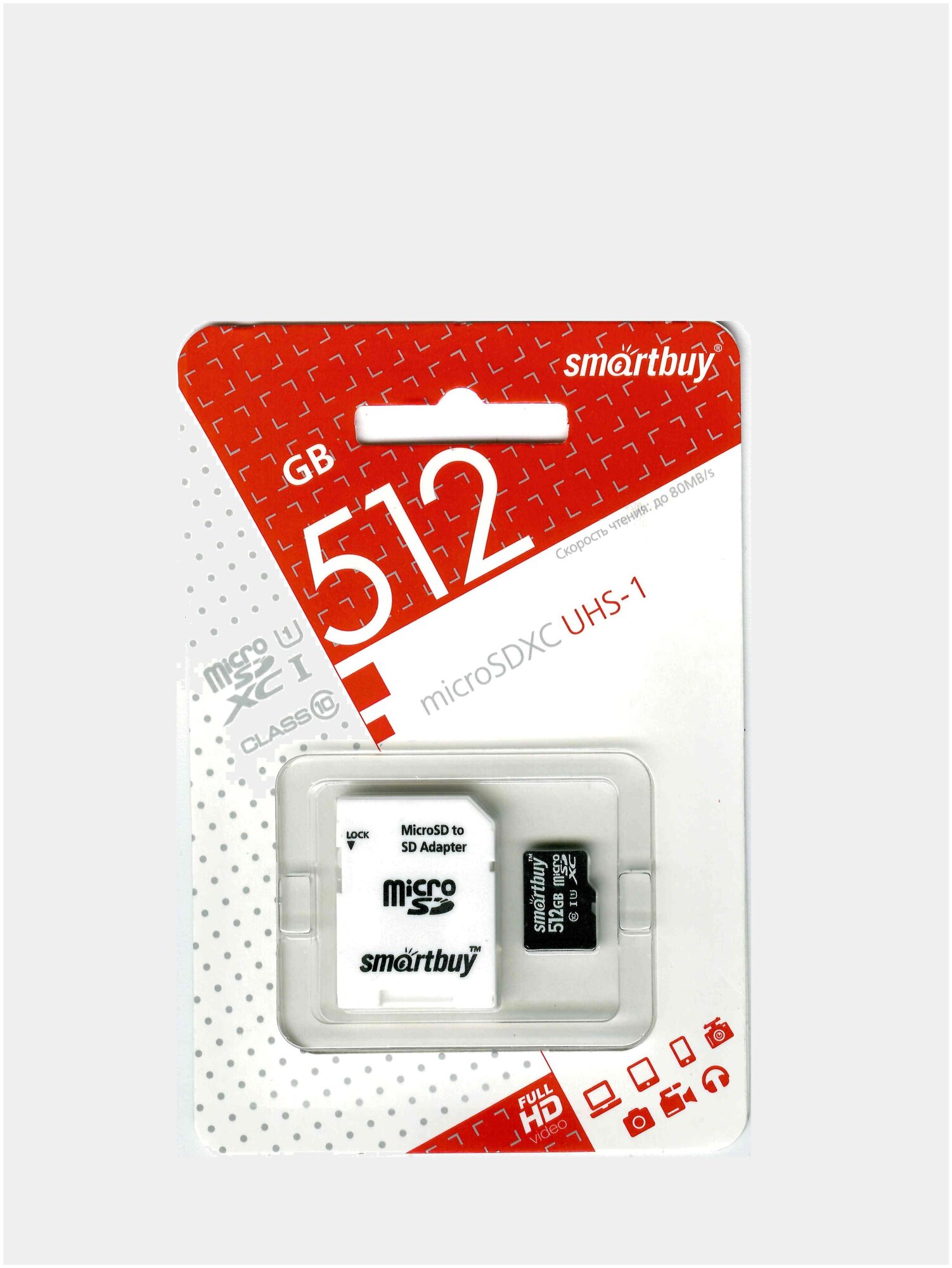 Карта памяти Smartbuy microSDXC 512GB Class 10 UHS-1 + SD адаптер