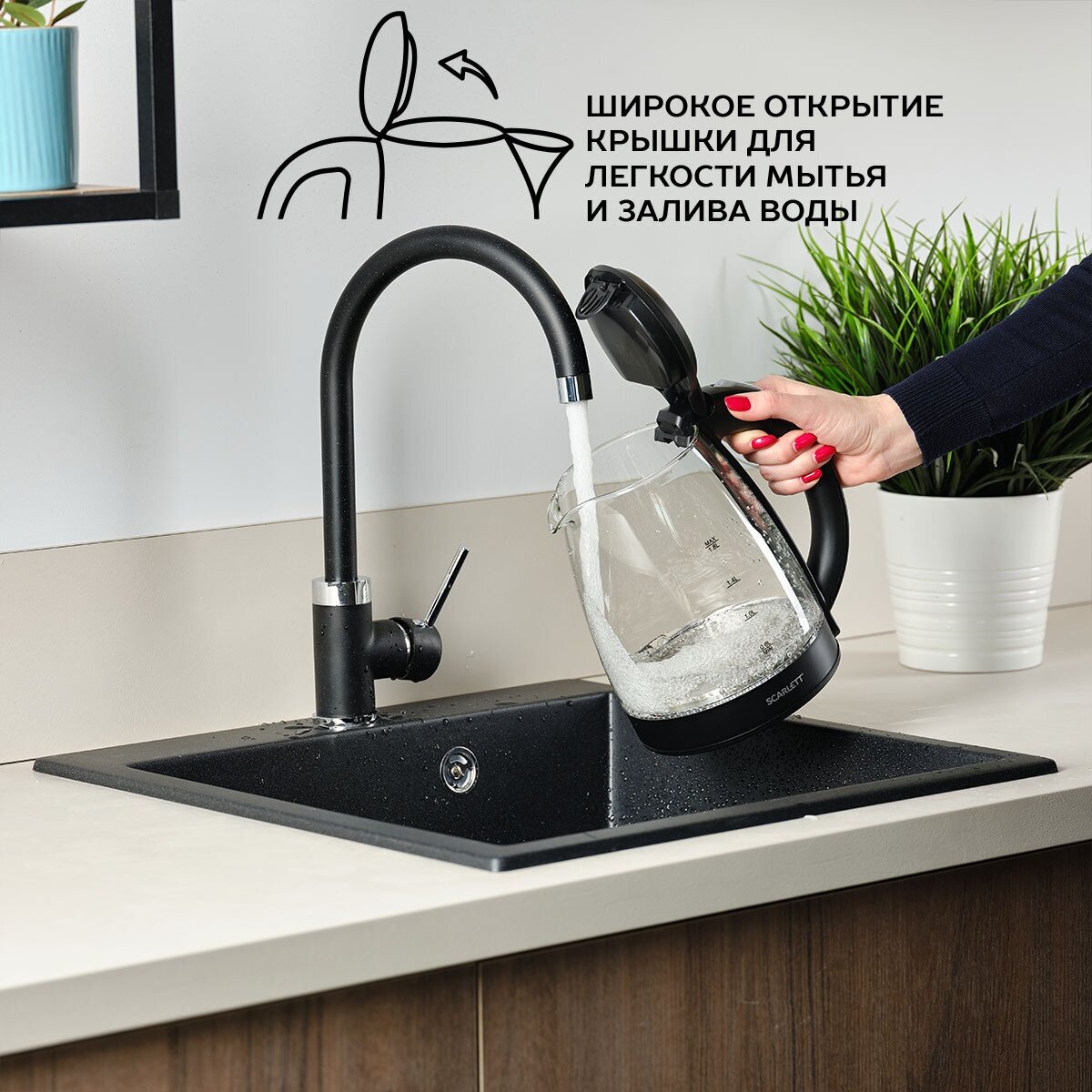 Scarlett Чайник электрический Scarlett SC-EK27G67, стекло, 1.8 л, 2000 Вт, чёрный