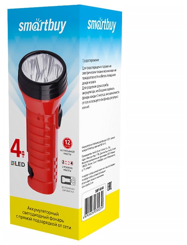 Cветодиодный фонарь (SMARTBUY (SBF-93-R) 4 LED с прямой зарядкой)