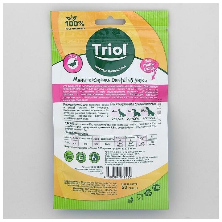 TRIOL™ Мини-косточки DENTAL из утки для мини-собак, 50г