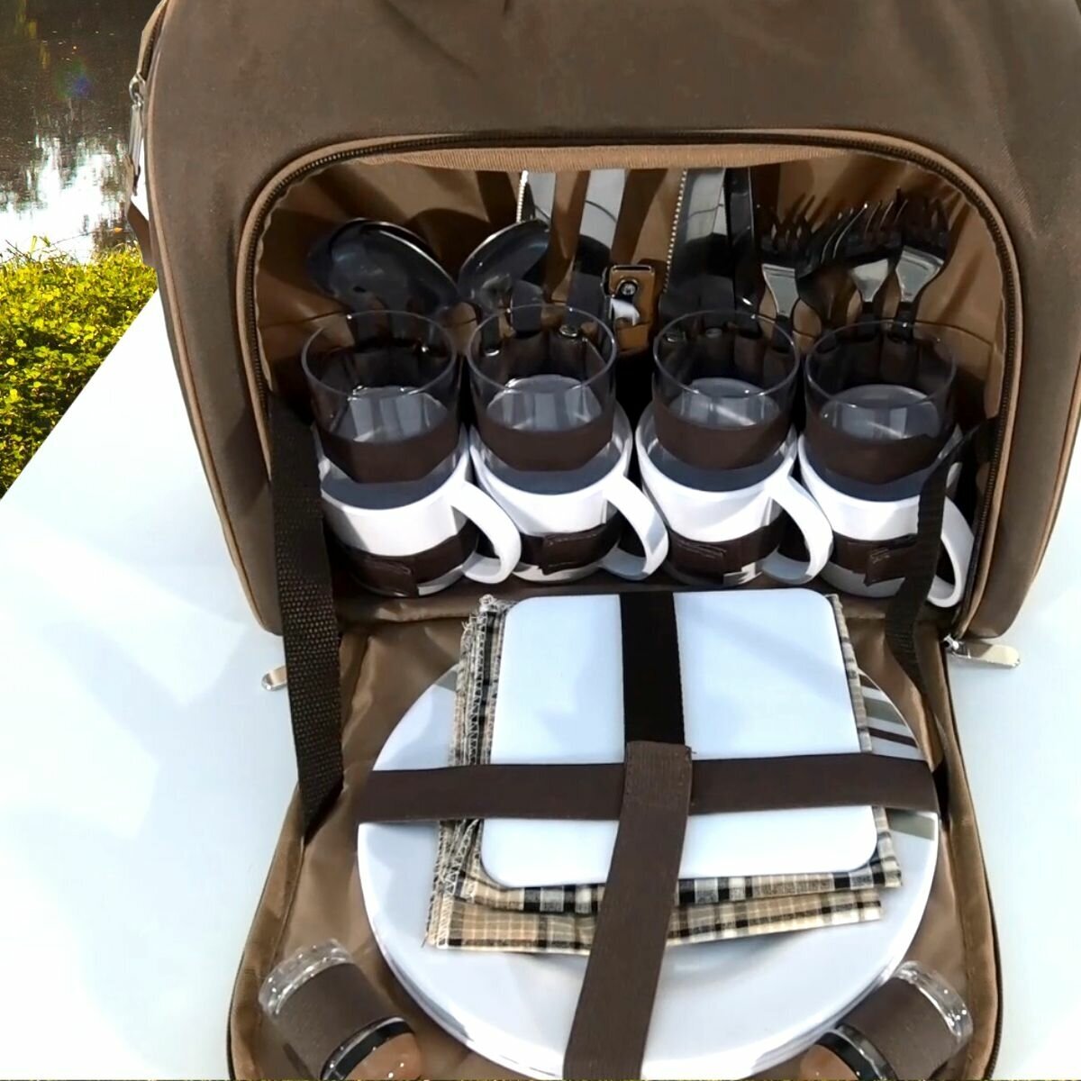 Набор для пикника Грин Глейд Т3338 на 4 персоны с термосумкой на 15л, пластик/нержавеющая сталь коричневый, 33 предмета / отдых на природе