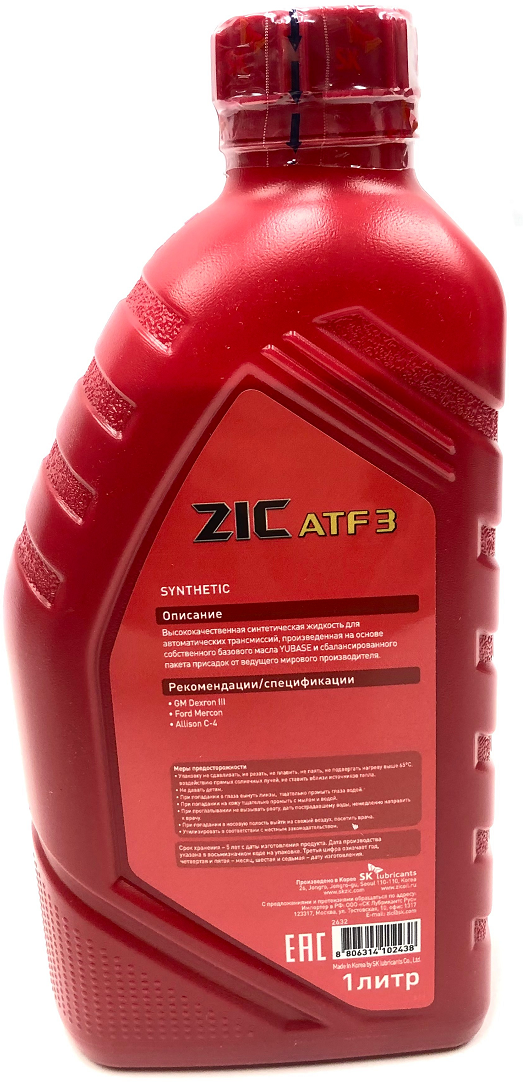 Масло трансмиссионное zic 1л синтетика atf 3 (gm dexron iii)