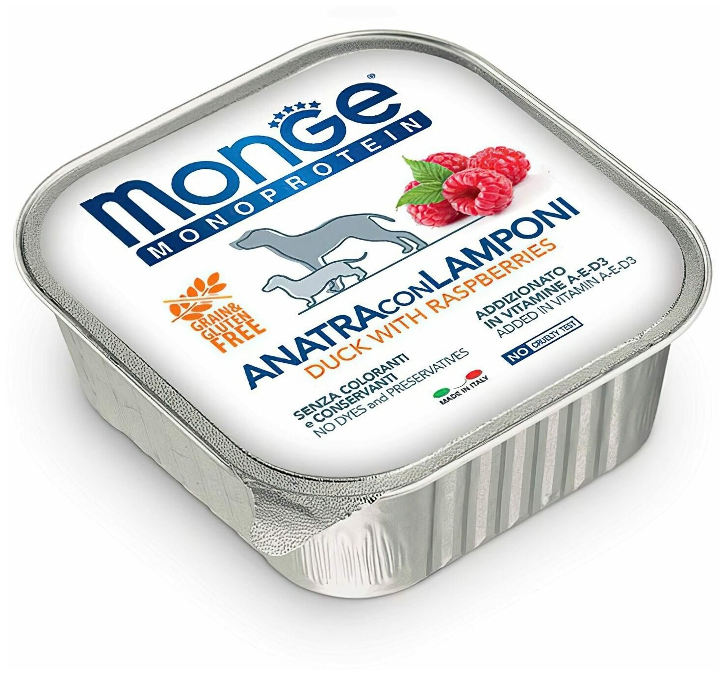 Влажный корм для собак Monge Dog Monoprotein ANATRA con LAMPONI, беззерновой, утка, с малиной, 150 г