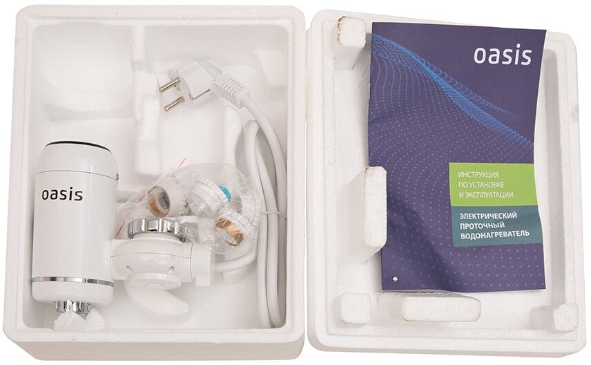 Лучшие цены. Современный европейский дизайн электрического проточного водонагреватели Oasis с удобной и надёжной электроникой дают практичное решение для любых ваших потребностей нагрева воды. Универсальная модель водонагревателя монтируется на уже установленный рабочий смеситель при помощи соответствующего переходника. Нагрев холодной воды происходит с помощью электронагревательного элемента, расположенного внутри корпуса. Магазины в вашем городе.