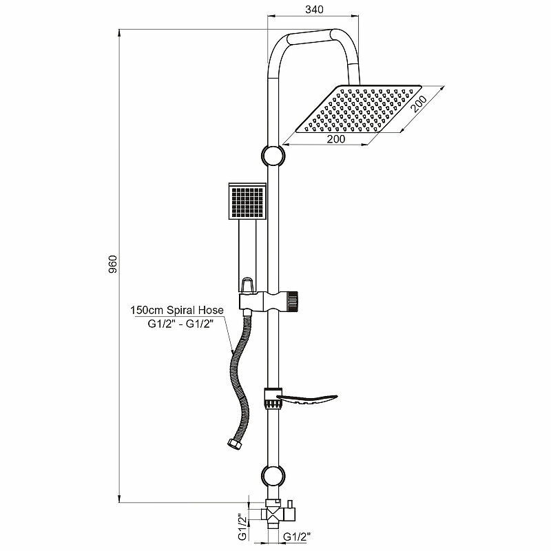 | Комплектация | ручной душ (душевая лейка) / верхний душ (тропический) / стойка / штанга / душевой шланг / крепление ручного душа / мыльница |
