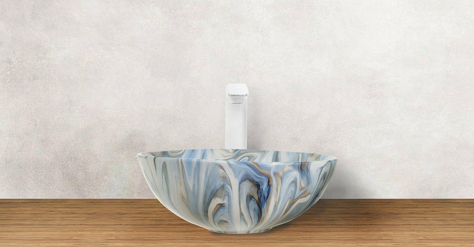 Умывальник Раковина WELTWASSER ELBACH 3003 M814 40x40 белый мрамор с голубым и серым