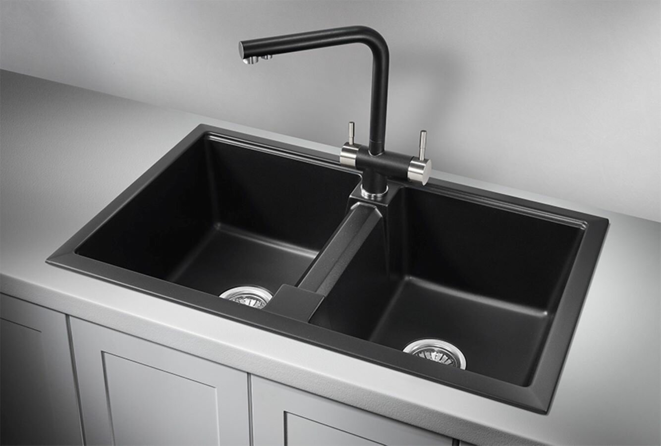 Кухонная мойка кварцевая Granula GR-8101 двухчашевая, врезная, чаша 335x420, 335x428, цвет черный (8101bl) 16 225 ₽ Подробнее