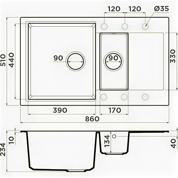 Лучшие цены. Характеристики: Коллекция: Daisen Материал мойки: искусственный гранит Диапазон ширины: от 80 до 90 см Ширина: 86 см Длина: 51 см Глубина: 23.4 см Ширина шкафа под мойку: 80 см Глубина столешницы: от 50 до 60 см Тип: мойка Монтаж: врезная Форма мойки: прямоугольная Форма чаши мойки: прямоугольная Крыло: есть Расположение крыла: оборачиваемая Угловая установка: нет Число основных чаш: 1 Число дополнительных чаш: 1 Дополнительная чаша: справа Отверстие под смеситель: нет; можно просверлить Намеченных. Магазины в вашем городе.