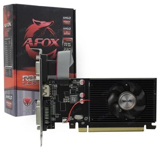 Видеокарта AFOX AMD Radeon R5 220, 1024MB, GDDR3, 64Bit, 400 МГц, HDMI, DVI, VGA, 2560х1600, Single Fan RTL {30}