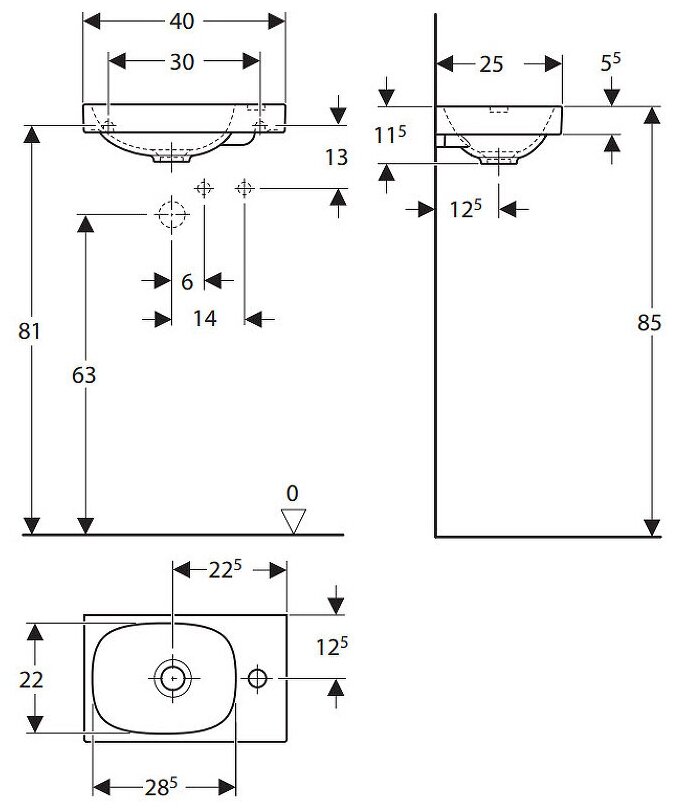 Geberit Acanto Раковина асимметричная, 400 x 250 мм, с отв. под смеситель справа, без перелива 10 027 ₽ Подробнее