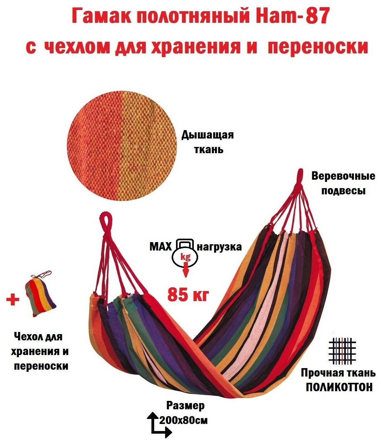 Гамак полотняный без планок Ham-87 (с чехлом), поликоттон, р-р: 200х80 см., цвет разноцветный
