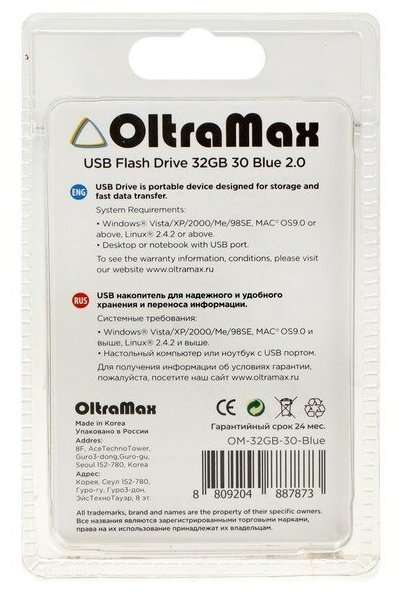 Флэш-накопитель OLTRAMAX OM016GB30-Bl, USB 2.0, синий