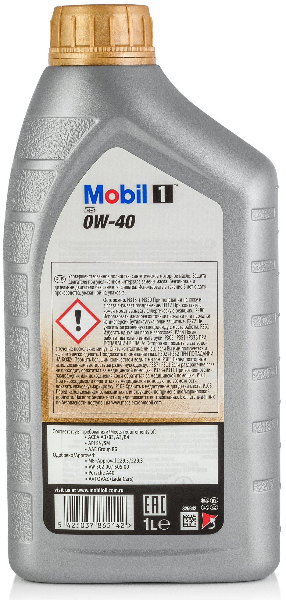 mobil 1 fs 0w40 (4l)_масло мот. !синт.\ api sn/sm/sl/sj/cf, acea a3/b3/b4, mb 229.3/229.5 8 014 ₽ Подробнее