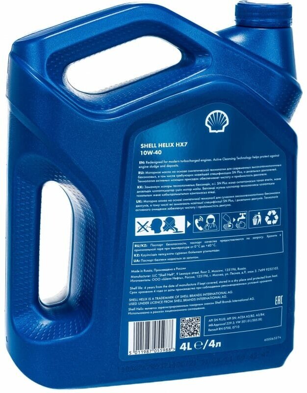 Полусинтетическое моторное масло SHELL Helix HX7 10W-40, 4 л 550051575 100% ориг