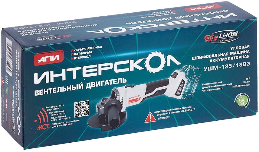 Шлифмашина угловая бесщеточная Li-Ion Интерскол УШМ-125/18ВЭ АПИ 684.1.0.70