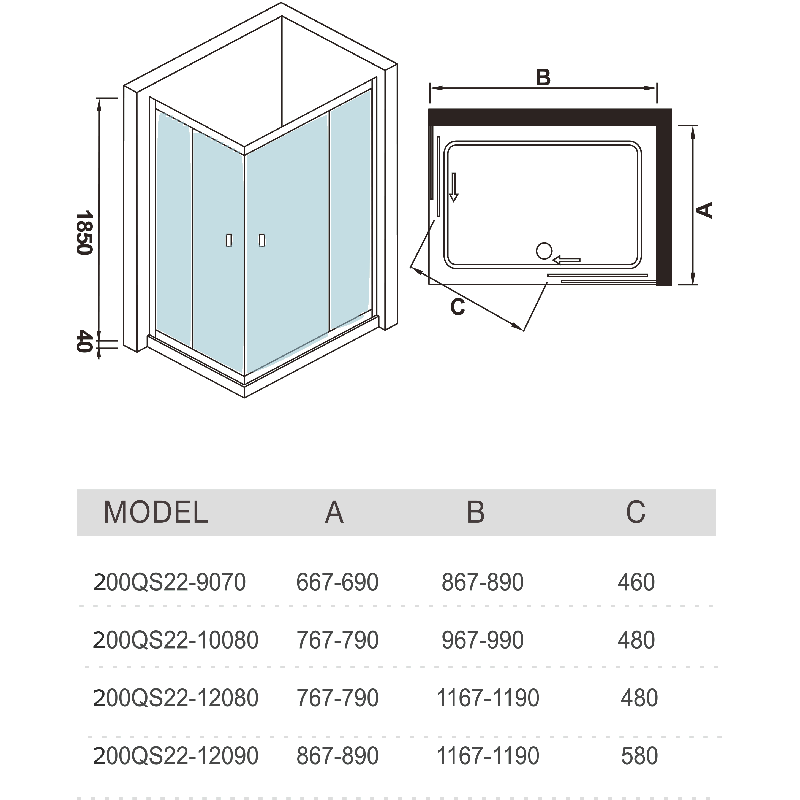 WW200 200QS22-10080 Душевое ограждение. 1000х800х1850 мм