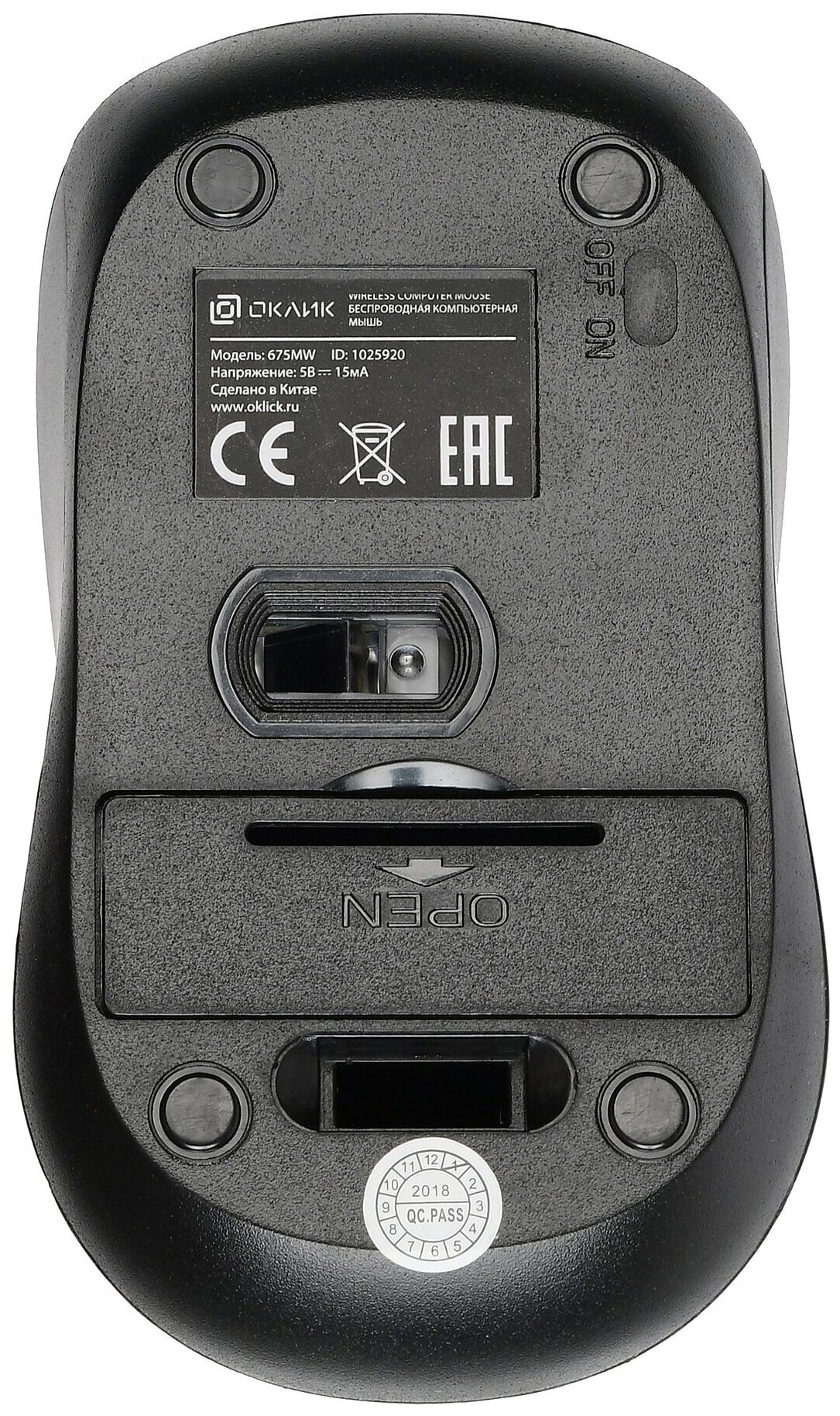 Мышь Oklick 675MW, оптическая, беспроводная, USB, черный [1025915]