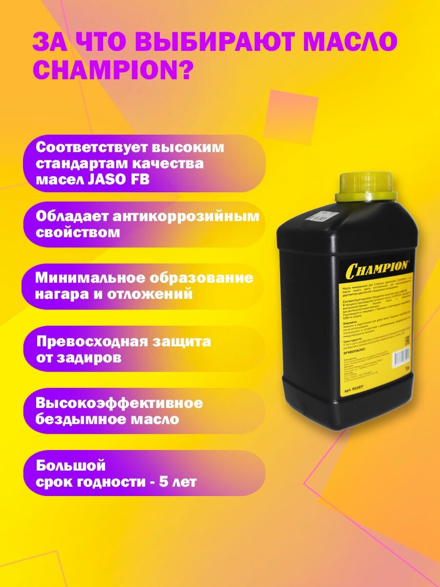 Масло Champion для 2-тактных двигателей минеральное JASO FB 1л