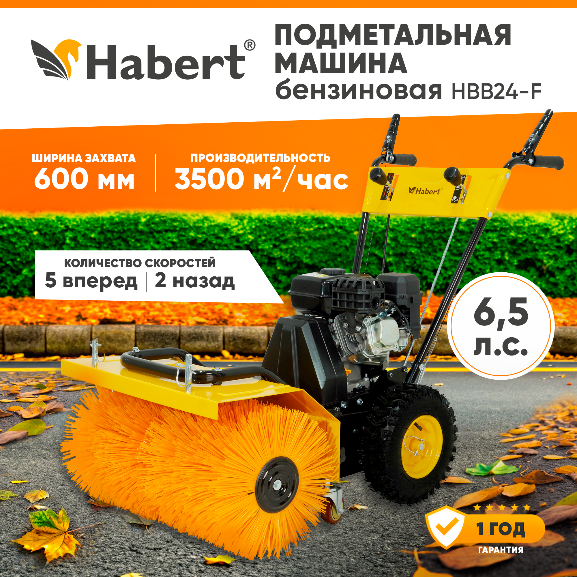 Машина подметально-уборочная Habert HBB25-F (самоходная, 6.5л.с., 4.1кВт, 5 - вперед, 2 — назад, щетка)