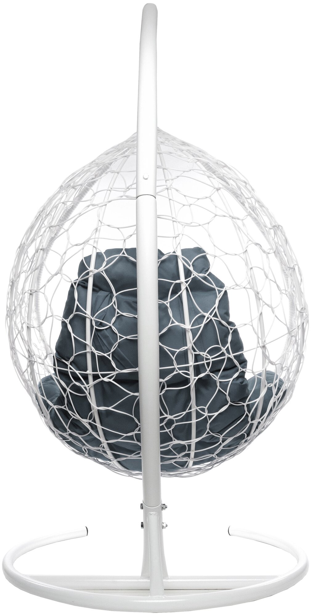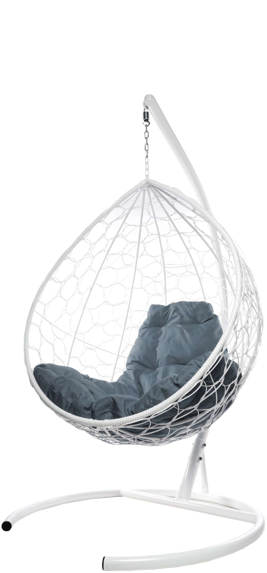 Садовая качель Подвесное кресло капля с ротангом белое, серая подушка