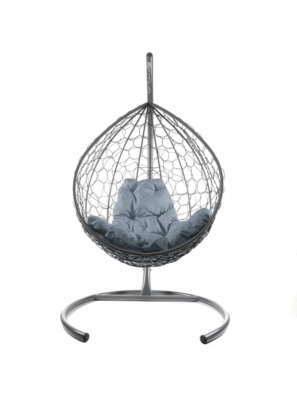 Подвесное кресло капля ротанг серое (без стойки), серая подушка