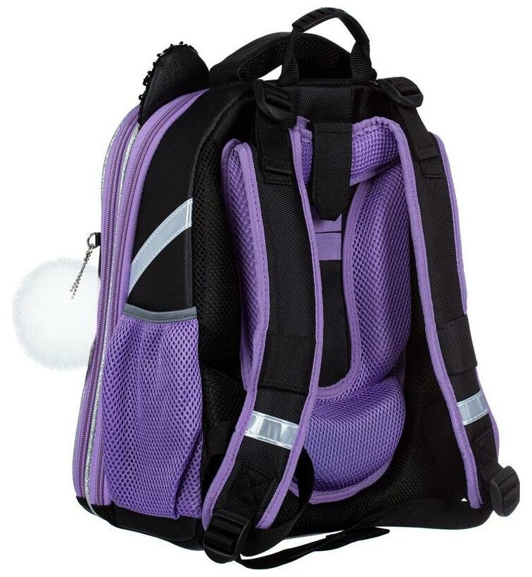Ранец №1 School Kitty black, 2 отделения, ортопедическая спинка, экокожа