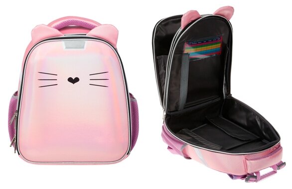 Школьный рюкзак (ранец) Ранец школьный №1 School Kitty, экокожа, 2 отделения, ортопедическая спинка, розовый