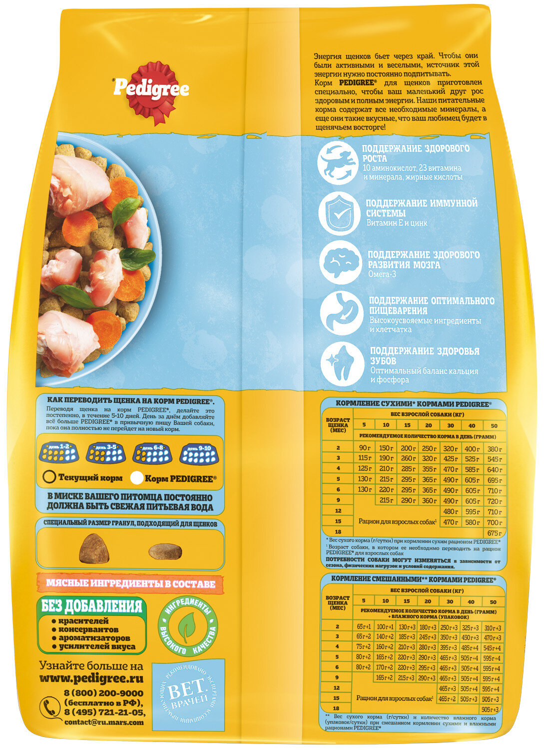 Лучшие цены. Сухой корм quot; Pedigree quot; с курицей - это полнорационный корм для щенков в возрасте от 2 месяцев, созданный с учетом потребностей щенков в период наиболее интенсивного роста. Он состоит из качественных и натуральных ингредиентов: мяса, овощей, злаков. Поэтому Pedigree способствует здоровому росту и гармоничному развитию вашего щенка. Он также создан с учетом особенностей пищеварения самых маленьких, легко усваивается и обеспечивает правильную работу их желудочно-кишечного тракта. Магазины в вашем городе.