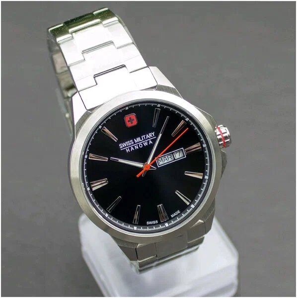 Наручные часы Швейцарские кварцевые часы Swiss Military Hanowa Day Date Classic 06-5346.04.007 на браслете из нержавеющей стали, с водозащитой 10 Бар и международной гарантией от производителя