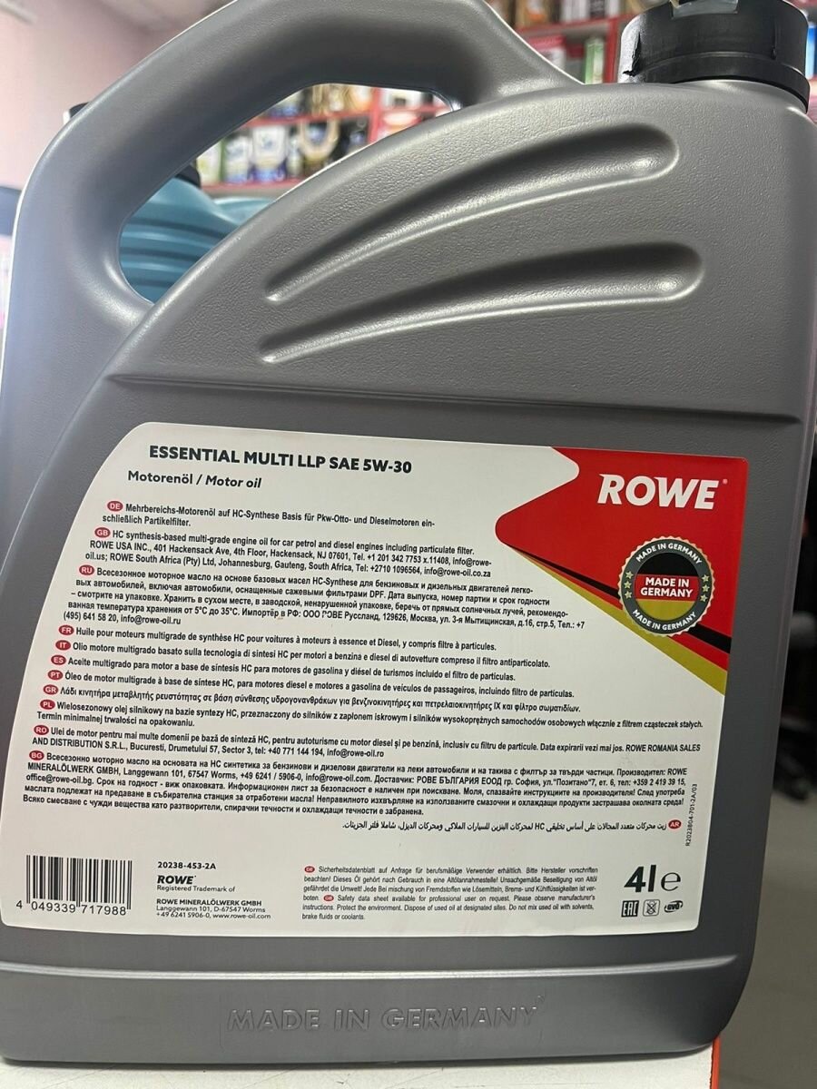 HC-синтетическое моторное масло ROWE Essential Multi LLP SAE 5W-30, 4 л