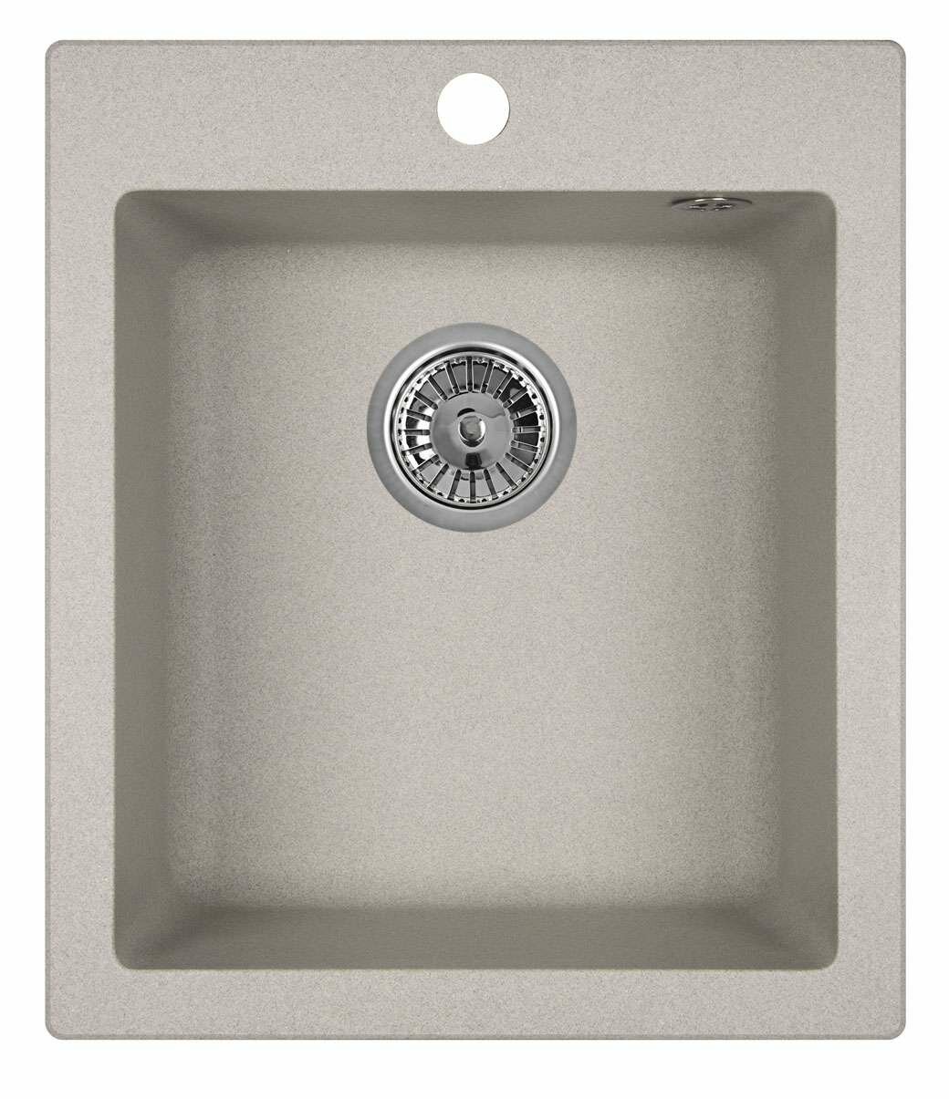 Мойка для кухни врезная кварц GRANULA 41.5x49x19.5 Кухоннвя раковина в комплекте с сифоном. Цвет серый