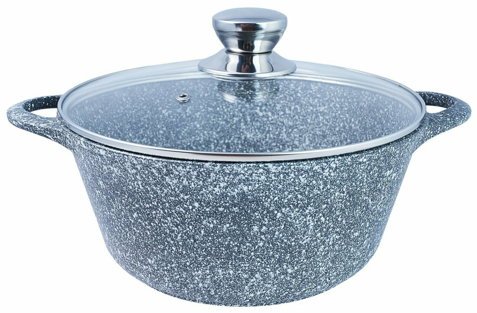 Кастрюля ТМ Традиция Мрамор литая 3,0л со стеклянной крышкой