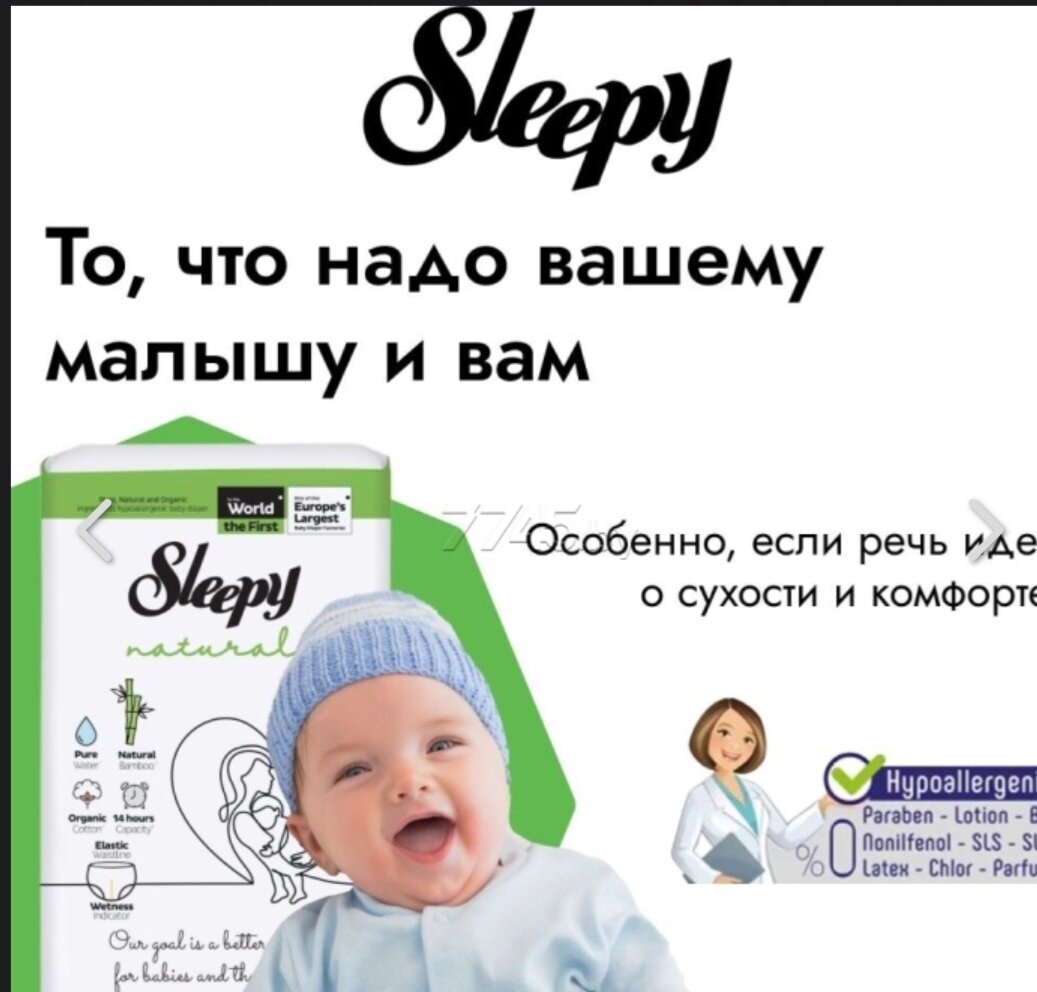 Памперсы Sleepy Natural NB 1, для новорожденных, 2-5 кг, 80 штук, белые 1 250 ₽ Подробнее