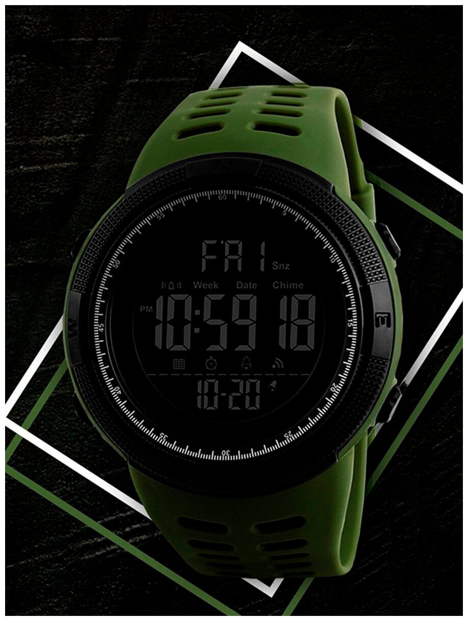 Наручные часы Наручные часы армейские тактические с будильником и секундомером SKMEI водонепроницаемые военные зеленого цвета