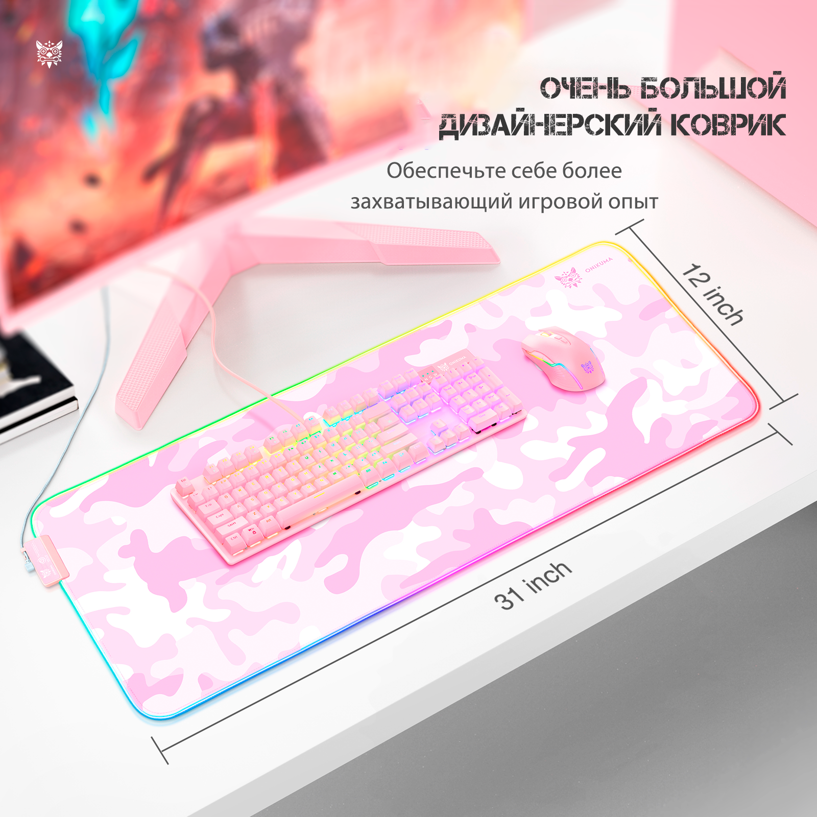 Коврики для мышек Коврик для мыши и клавиатуры ONIKUMA MP005 Military Field розовый с RGB подсветкой