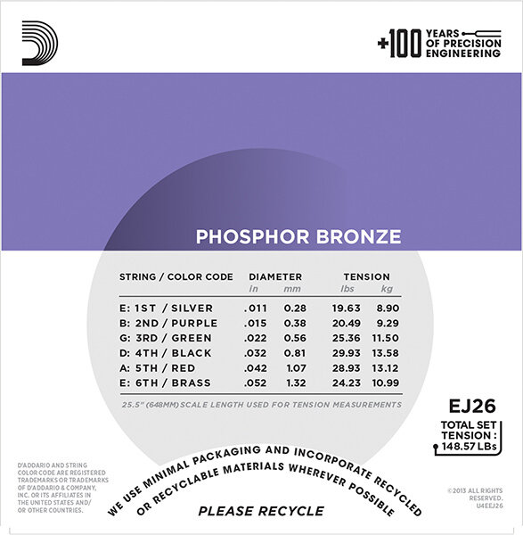 Лучшие цены. EJ26 PHOSPHOR BRONZE Струны для акустической гитары фосфорная бронза Custom Light 11-52 D`Addario 019954122164 Струны EJ26, названные Custom Light, являются оригинальным гибридом толщины от компании D'Addario. Удобный компромисс для музыкантов ищущих глубину и отчетливость тонких струн, но предпочитающих меньшее натяжение для исполнения бендов. Фосфорная бронза была представлена для производства струн компанией D'Addario в 1974 году и с тех пор стала синонимом теплого, яркого и хорошо сбалансированного. Магазины в вашем городе.