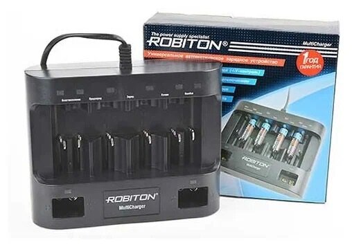 Лучшие цены. ROBITON MultiCharger – многоканальное универсальное автоматическое зарядное устройство, предназначено для заряда Ni-MH аккумуляторов всех популярных типоразмеров. Устройство заряжает аккумуляторы типоразмера AA, AAA, C, D и 9В «Крона». Для аккумуляторов AА и AAA предусмотрено 6 зарядных слотов. Это автоматическое зарядное устройство с микропроцессорной обработкой. Устройство само определяет необходимое время заряда. Магазины в вашем городе.