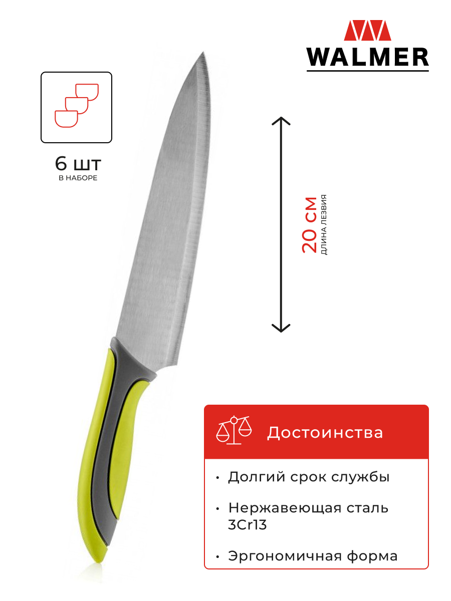 Набор кухонных ножей Walmer Vegan, 6 предметов