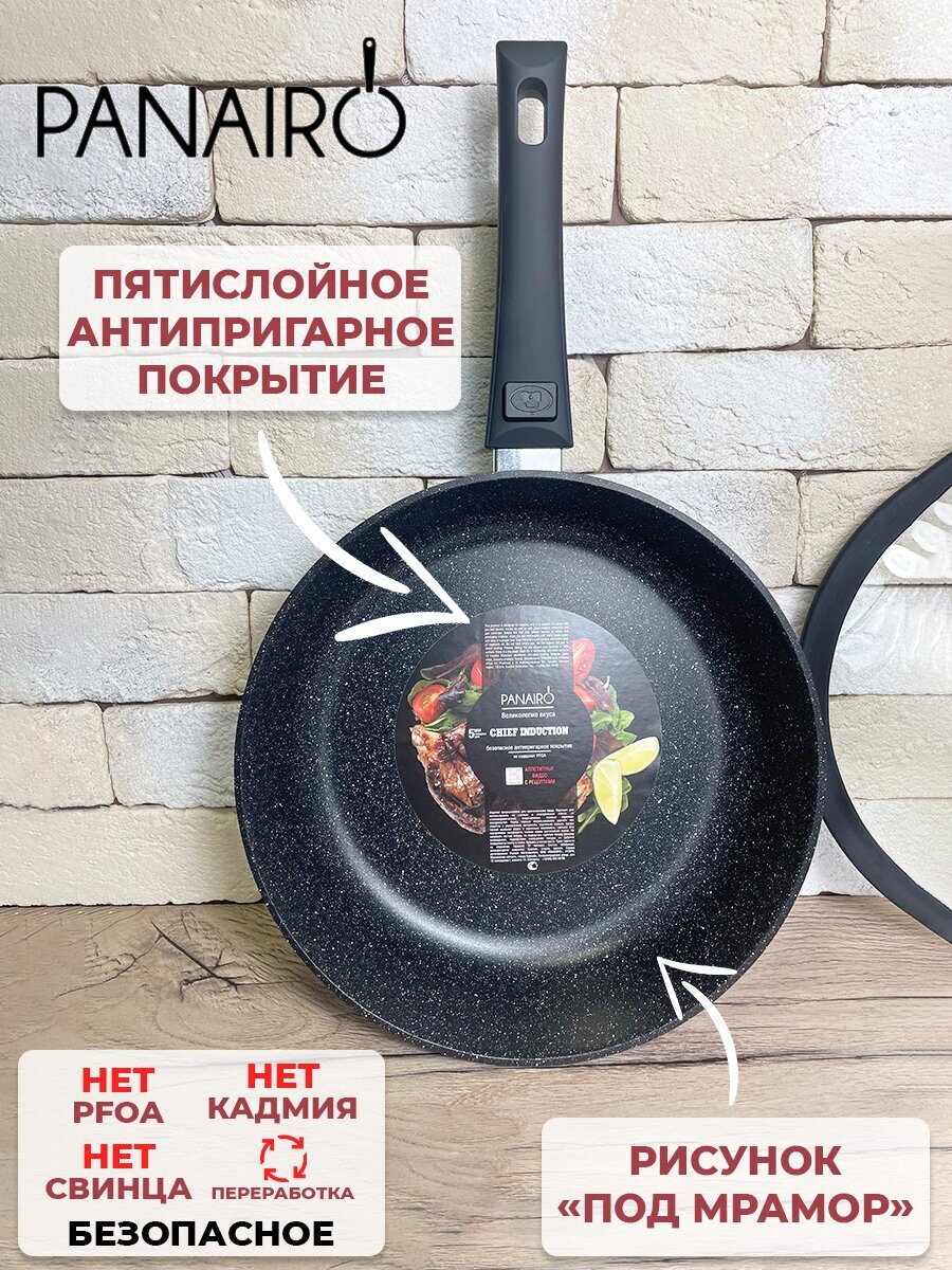 Лучшие цены. Жарим до румяной корочки! Удобная и практичная сковорода Panairo "Chief induction", произведенная из материалов высшего класса безопасности, создана для того, чтобы дарить легкость в приготовлении любимых блюд. ● Благодаря большому диаметру (26 см по верхнему краю), в ней удобно перемешивать. ● В комплект входит стеклянная, жаропрочная, точно подходящая по размеру к сковороде крышка со сливом и силиконовыми ободом и ручкой, которые абсолютно безопасны: не выделяют вредных веществ при нагревании. Магазины в вашем городе.