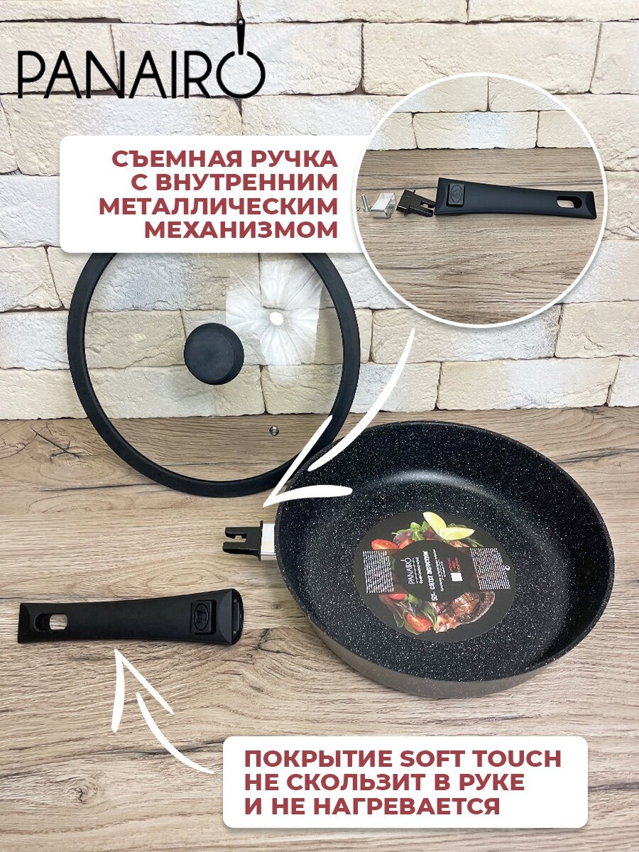 Сковорода глубокая 24см PANAIRO "Chief induction" c крышкой и съемной ручкой soft-touch, индукция