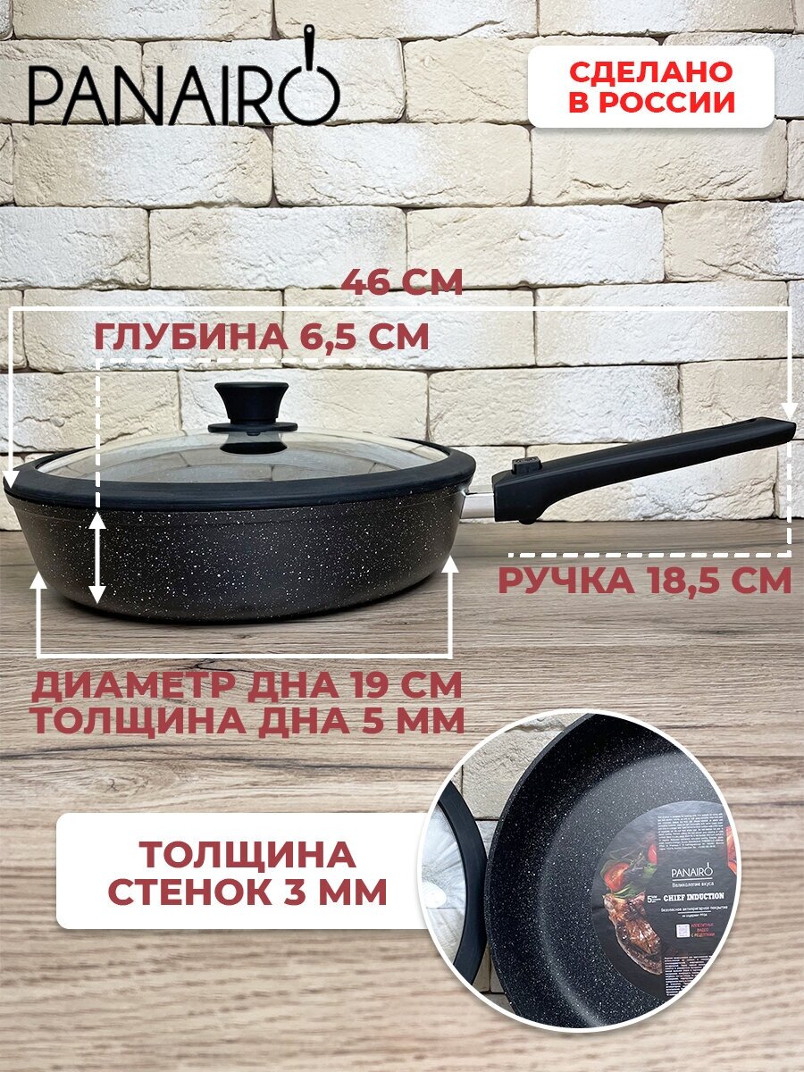 Сковорода глубокая Panairo "Chief induction" c крышкой и съемной ручкой, 24 см