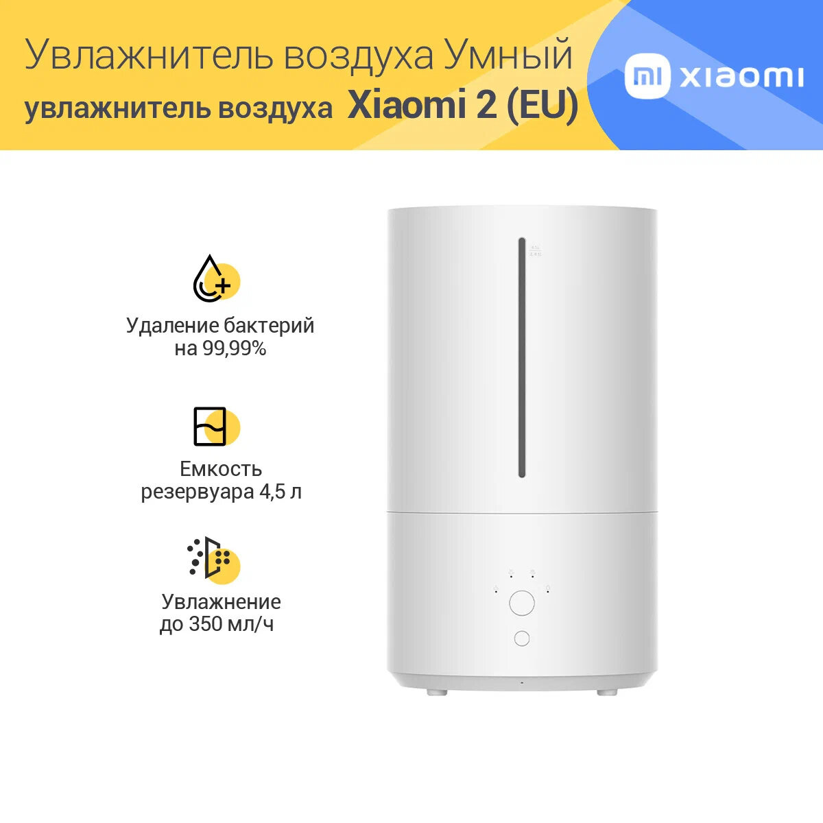 Умный увлажнитель воздуха с функцией ионизации 4,5 литра Xiaomi Mijia Smart Sterilization Humidifier 2 (BHR6026EU), EU-Русская глобальная версия