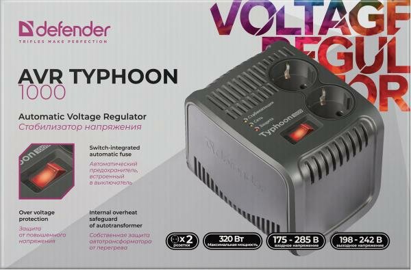 Стабилизатор напряжения Defender AVR Typhoon 1000 320 Вт, 2 розетки