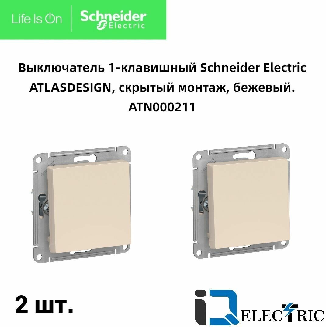 Выключатели Выключатель одноклавишный бежевый 2шт Schneider Electric Atlas Design ATN000211